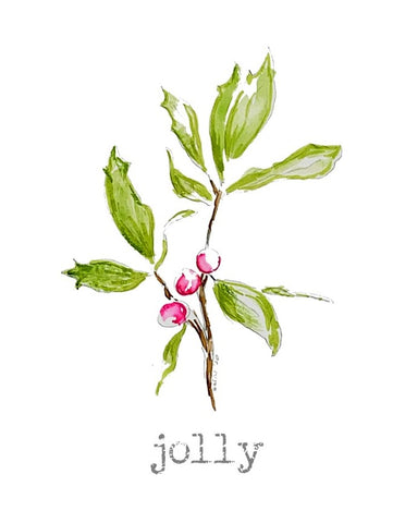 Holly Jolly features a reproduction of an original watercolor illustration of a holly twig with berries that are pink-ish instead of red, pink is pretty.