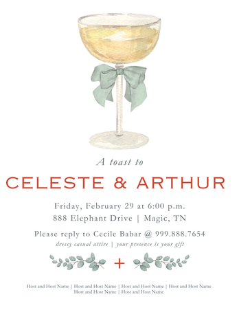 Fully customizable A7 (5x7) invitation featuring a watercolor illustration of a champagne coupe.